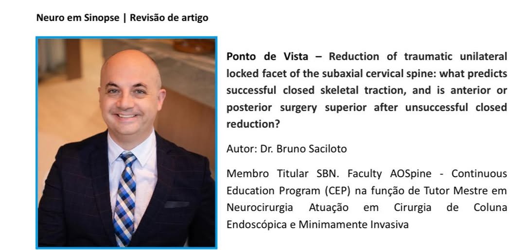 Dr. Bruno Saciloto, neurocirurgião de coluna de nosso centro em Guarapuava, é destaque na revista da Sociedade Brasileira de Neurocirurgia deste mês de outubro.