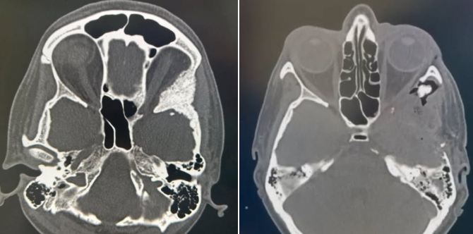 Mais uma neurocirurgia de alta complexidade envolvendo a base do crânio foi realizada no Hospital Regional de Santa Maria. O caso tratava-se de um meningeoma em placa, acometendo a órbita, a fissura orbital superior e a fossa pterigopalatina.