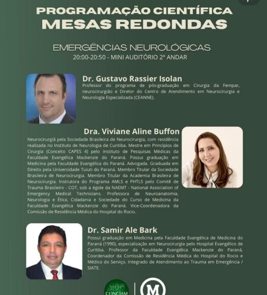 Os professores Samir Ale Bark, Viviane Buffon e Gustavo Isolan palestraram para estudantes de medicina no último CONCIAM, realizado na Associação Médica do Paraná, em Curitiba. O tema abordou as emergências neurológicas e neurocirúrgicas e a experiência do CEANNE em teleneurologia. Páginas Relacionadas: CEANNE Hospital...